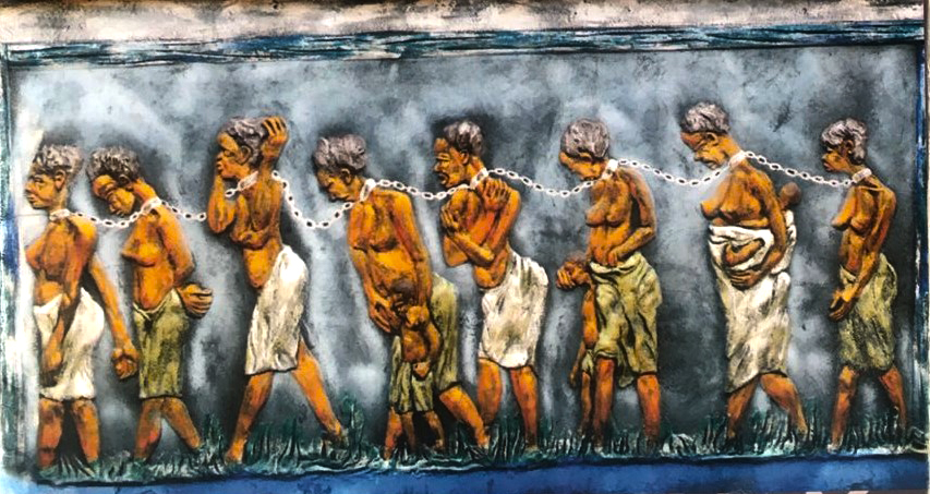 The Adzido Slave Memorial Centre is an extension of the Hedzranawo Slavery museum. Situated at a site believed to be a slave market, the museum features sculptures and painted scenes that memorialize the enslavement processes encountered at this historical slave market site. It also features exposed foundation walls of a two-room house or barracoon once used in the trade. The museum also hosts various cultural materials (mostly trans-Atlantic and local trade goods) excavated from around the foundation walls in the slave market, which are on display for visitors.